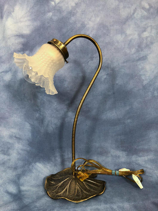 Vintage 18" Flower Table Lamp, Unique Gooseneck Fluted Antique Brushed